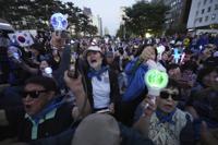 Supporters of South Korea's Democratic Party's presidential candidate Lee Jae-myung, react outside the ºÃÉ«tv Assembly in Seoul, South Korea, Tuesday, June 3, 2025. (AP Photo/Ahn Young-joon)
