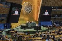 Performers parade with giant marionettes and drums during a street procession at an art festival in Bamako, Mali, on Nov. 6, 2025. (AP Photo/Moustapha Diallo)