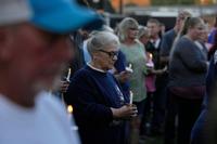 A woman holds a candle vigil honoring the victims of a blast at an explosives plant, Accurate Energetic Systems, Sunday, Oct. 12, 2025, in Waverly, Tenn. (AP Photo/George Walker IV)