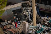 ADAMUZ, Spain (AP) — A Barcelona commuter train crashed Tuesday after a retaining wall fell onto the tracks, Spanish regional authorities said, killing one person and injuring 15 others.