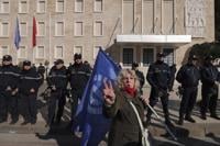 FILE - Comedian Russell Brand speaks in Parliament Square during a protest against the Conservative Government and it's austerity policies in London, Saturday, June 20, 2015. (AP Photo/Tim Ireland, File)