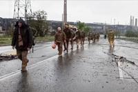 FILE - In this image taken from video released by the Russian Defense Ministry on Thursday, May 19, 2022, Ukrainian servicemen leave the besieged Azovstal steel plant in Mariupol, in territory under the government of the Donetsk People's Republic, eastern Ukraine. (Russian Defense Ministry Press Service via AP, File)