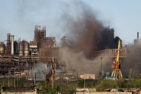 FILE - Smoke rises from the Metallurgical Combine Azovstal in Mariupol during shelling, in Mariupol, in territory under the government of the Donetsk People's Republic, eastern Ukraine, Saturday, May 7, 2022. (AP Photo/Alexei Alexandrov, File)