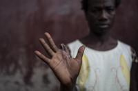 Lovely Benjamin, 26, has scars on her torso and arm after being shot by gangs and attacked with a machete. Her 4-year-old son bears a machete scar on his head. They are homeless, and Benjamin struggles to find work. The gangs torched the items that she used to sell, including rice and oil, and she doesn’t have the money to buy more. She and her little boy survived the attack but gang members killed her partner and set his body on fire.