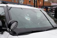 One police vehicle had its taillight smashed and windshield damaged. DHS said some protesters threw a paint can and bricks at agents’ vehicles.