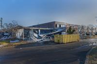 A wing of the facility that housed the kitchen and cafeteria was almost entirely destroyed, with the roof caved in, sections of walls completely missing and windows on adjoining walls blown out. Debris littered the grounds.