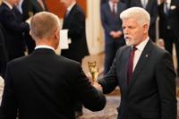 Czech Republic's President Petr Pavel, right, toasts with Prime Minister Andrej Babis after appointing his government members at the Prague Castle in Prague, Czech Republic, Monday, Dec. 15, 2025. (AP Photo/Petr David Josek)