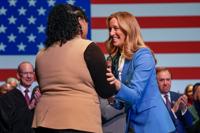 New Jersey Governor-elect Mikie Sherrill greets supporters as she arrives for her inauguration, Tuesday, Jan. 20, 2026, in Newark, N.J. (AP Photo/Seth Wenig)