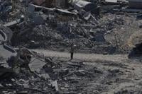 The footage taken by The Associated Press on Saturday shows few buildings still standing in the Tal al-Hawa neighborhood. The rest appear to be gutted. Piles of debris rise well above the tops of vehicles. Roads are shrouded in concrete dust.