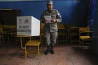 An Air Force officer votes in a referendum proposed by President Daniel Noboa to endorse new security measures aimed at cracking down on criminal gangs fueling escalating violence in Quito, Ecuador, Sunday, April 21, 2024. (AP Photo/Dolores Ochoa)