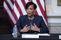 Keisha Lance Bottoms, Senior Advisor to the President for Public Engagement, speaks during a roundtable discussion with Doug Emhoff, the husband of Vice President Kamala Harris, and Jewish leaders about the rise in antisemitism and efforts to fight hate in the United States in the Indian Treaty Room in the Eisenhower Executive Office Building on the White House Campus in Washington, Wednesday, Dec. 7, 2022. (AP Photo/Patrick Semansky)