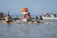 High priests ride in a boat as faithful celebrate Timket, the Ethiopian Epiphany, on lake Dembel, in Batu, Ethiopia, Sunday, Jan. 18, 2026. (AP Photo/Amanuel Sileshi)