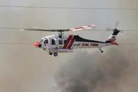 This image provided by Cal Fire San Bernardino Unit shows a helicopter being flown over the Silver Fire, Sunday, March 30, 2025, in Inyo County, Calif. (Cal Fire San Bernardino Unit via AP)