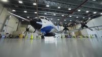 The Lockheed WP-3D Orion "Hurricane Hunter" aircraft is seen in a hangar at the NOAA Aircraft Operations Center Tuesday, May 6, 2025, in Lakeland, Fla. (AP Photo/John Raoux)