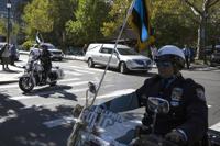 A hearse carrying the casket of Philadelphia police officer Richard Mendez leaves the Cathedral Basilica of Saints Peter and Paul in Philadelphia, Tuesday, Oct. 24, 2023. Mendez was shot and killed, and a second officer was wounded, when they confronted people breaking into a car at Philadelphia International Airport on Thursday, Oct. 24, police said. (AP Photo/Joe Lamberti)