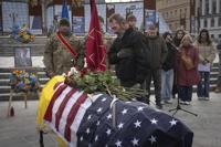 At the funeral service in Kyiv’s Independence Square, Hertweck's mother, father, sister and brother were presented with Ukrainian and U.S. flags as part of a military honors ceremony.