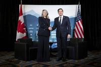 ɫtv Foreign Minister Melanie Joly, left, and US Secretary of State Marco Rubio pose for photos on the sidelines of the G7 foreign ministers meeting in La Malbaie, Canada, Friday March 14, 2025. (Saul Loeb, Pool Photo via AP)