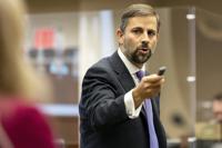 Defense attorney Daniel Rashbaum presents his closing arguments in the trial for his client Charlie Adelson on Monday, Nov. 6, 2023, in Tallahassee, Fla. Adelson, a Florida dentist on trial in a murder-for-hire case involving the 2014 slaying of his ex-brother-in-law, claims he was a victim of extortion by the killers. (Alicia Devine/Tallahassee Democrat via AP, Pool)