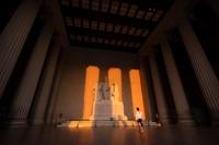 A visitor walks at the Lincoln Memorial at sunrise on Wednesday, Oct. 1, 2025, in Washington. (AP Photo/Mark Schiefelbein)