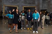 Rep. Alexandria Ocasio-Cortez, D-N.Y., gives a tour of the Capitol to a group of students from New York after their previously-scheduled tour was canceled due to the government shutdown on Wednesday, Oct. 1, 2025, in Washington. (AP Photo/Mark Schiefelbein)