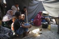 Tahrir Abu Jazar, 36, of Rafah, warmed up leftover lentils and cooked rice inside her tent, but said she had no bread to feed her five children, who sat on the bare ground nearby.