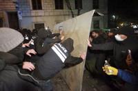 Police block protesters pouring into the streets following Georgian Prime Minister Irakli Kobakhidze's announcement, rallying outside the parliament building in Tbilisi, Georgia, on Friday, Nov. 29, 2024. (AP Photo/Zurab Tsertsvadze)