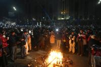 Demonstrators warm themselves during a rally to protest against the government's decision to suspend negotiations on joining the European Union in Tbilisi, Georgia, Sunday, Dec. 8, 2024. (AP Photo/Pavel Bednyakov)