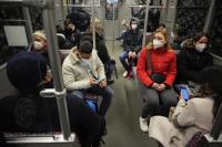 FILE - People wearing face masks to protect against coronavirus, travel on a metro in Berlin, Germany, March 31, 2022. A German doctor has been sentenced to two years and nine months in prison for illegally issuing more than 4,000 people with exemptions from wearing masks during the coronavirus pandemic. (AP Photo/Pavel Golovkin, File)