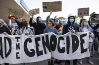 FILE- Pro-Palestinian protesters demonstrate on the campus of DePaul University, April 30, 2024, in Chicago. (AP Photo/Charles Rex Arbogast, file)
