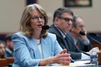 Wendy Raymond, president of Haverford College, testifies before the House Committee on Education and Workforce hearing on antisemitism on American campuses onCapitol Hill in Washington, Wednesday, May 7, 2025. (AP Photo/Jose Luis Magana)