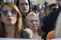 A woman reacts during a rally organised by the association of the families of victims of the Tempi train collision, which killed 57 people almost two years ago, at central Syntagma square, in Athens, Greece, Sunday, Jan. 26, 2025. (AP Photo/Yorgos Karahalis)