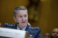 Gen. John D. Caine, chairman of the Joint Chiefs of Staff, testifies during a Senate Committee on Appropriations subcommittee hearing to examine proposed budget estimates for fiscal year 2026 for the Department of Defense, on Capitol Hill, Wednesday, June 11, 2025, in Washington. (AP Photo/Rod Lamkey, Jr.)