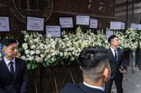 Before the funeral, some black-clad residents laid flowers at a mourning area outside the venue. One woman cried when she paid respect, and a man made a salute gesture.