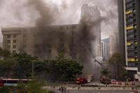 Thick smoke was seen pouring out from the eight-story factory building where the fire broke out around 2 p.m. at a warehouse on Fat Tseung Street in Cheung Sha Wan, a residential and industrial area in Kowloon, the government said. The fire was largely extinguished at 8:40 p.m.