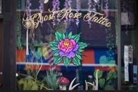 The Ghost Rose tattoo parlor is seen, Monday, Nov. 3, 2025, in Ellsworth, Maine. (AP Photo/Robert F. Bukaty)