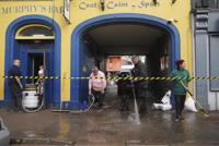 The clean up gets underway on Main Street following extensive damage as Storm Babet, the second named storm of the season swept in, in Midleton, Co Cork, Ireland, Thursday Oct. 19, 2023. Hundreds of people are being evacuated from their homes and schools have closed in parts of Scotland, as much of northern Europe braces for stormy weather, heavy rain and gale-force winds from the east. (Brian Lawless/PA via AP)
