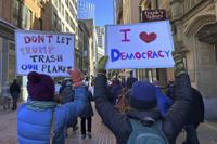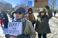 BOSTON (AP) — Chanting “Stop the coup†and carrying signs including “I Love Democracy†and “Resist," hundreds of people rallied Friday in Boston against the policies of President Donald Trump and his billionaire adviser Elon Musk.