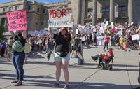 FILE - Chanting "My body. My choice," protestors, upset with the U.S. Supreme Court's overtuning of Roe v. Wade, gather at at the Idaho Capitol steps, Friday, June 24, 2022, after marching from Boise City Hall through downtown. A rural hospital in Sandpoint, Idaho, will stop delivering babies, citing recently passed state laws criminalizing medical care, among other reasons. (Darin Oswald/Idaho Statesman via AP,File)