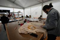 Tailors work on clothes during rehearsals for the opening ceremony of the Milan Cortina 2026 Winter Olympic Games, at a compound in a big tent next to San Siro Stadium, in Milan, Italy, Saturday, Jan. 24, 2026. (AP Photo/Luca Bruno)