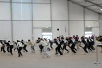 The young dancers are among some 1,200 volunteers who have been rehearsing since November in the tent large enough to mark the actual stage while Italian Serie A soccer wrapped up its final soccer matches before turning the iconic stadium into an Olympic venue.