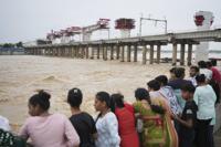 People throng at the Sabarmati riverfront to watch flooded River Sabarmati, in Ahmedabad, India, Sunday, Aug. 24, 2025. (AP Photo/Ajit Solanki)