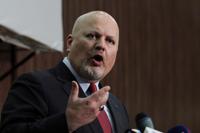 FILE - Karim Ahmed Khan, International Criminal Court chief prosecutor, speaks during a news conference at the Ministry of Justice in the Khartoum, Sudan, Aug. 12, 2021. International Criminal Court judges said Tuesday that the court's prosecutor can resume his investigation into allegations of crimes against humanity by security forces under Venezuelan President Nicolas Maduro’s rule. (AP Photo/Marwan Ali, File)