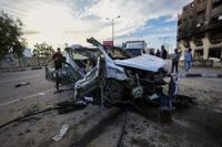 A small boy cried over his father in southern Gaza's Khan Younis, and a woman draped herself over one of the bodies wrapped in white plastic. Three airstrikes in the city hit a car, a house and people on the street, according to staff at Nasser Hospital.