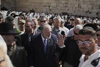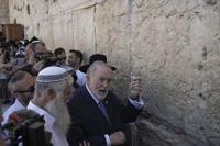 US ambassador to Israel Mike Huckabee, center, visits the Western Wall, the holiest site where Jews can pray, in the Old City of Jerusalem, Friday, April 18, 2025. (AP Photo/Leo Correa)