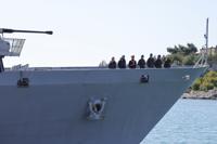 A military ship with the migrants departed the Italian port of Brindisi and arrived hours later in the Albanian port of Shengjin, about 65 kilometers (40 miles) northeast of the capital, Tirana. The migrants were seen being transferred in buses and minivans under heavy security to an Italian-run center in Shengjin, where they will be processed before being transferred to a second center in Gjader, also run by Italian authorities.