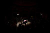 The U.S. Army Band Brass Quintet played as people awaited the casket. The room fell silent as three knocks on the rotunda door marked Carter's arrival. The casket was placed in the middle of the room on the catafalque built in 1865 to hold assassinated President Abraham Lincoln's casket in the same place.