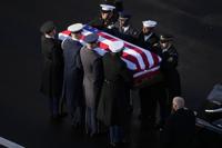 The U.S. Naval Academy Glee Club performed “My Country, 'Tis of Thee†before congressional leaders and Harris, accompanied by her husband Doug Emhoff, placed wreaths beside the casket. Members of Carter's family, including some of his grandchildren and great-grandchildren, wiped tears.