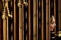 FILE - British Prime Minister Liz Truss takes her seat for the funeral service of Queen Elizabeth II at Westminster Abbey in central London, Monday Sept. 19, 2022. On Thursday, Oct. 20, 2022 Truss quit after losing support of Conservative lawmakers following weeks of turmoil over botched economic plan. (Ben Stansall/Pool via AP, FIle)