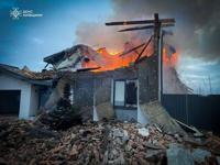 In this photo provided by the Ukrainian Emergency Service on Tuesday, Dec. 23, 2025, a residential house burns after a Russian strike in Kyiv region, Ukraine. (Ukrainian Emergency Service via AP)