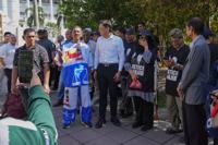 Supporters of Malaysia's former Prime Minister Najib Razak gather outside the Kuala Lumpur High Court Complex, in Kuala Lumpur, Malaysia, Monday, Dec. 22, 2025. (AP Photo/Azneal Ishak)